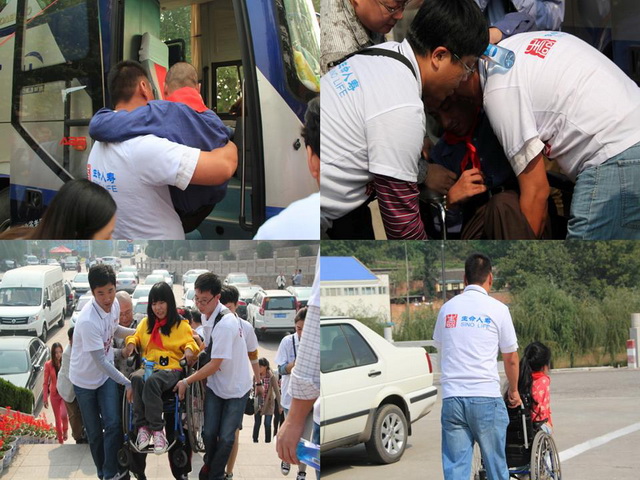生命人壽志愿者在整個(gè)參觀活動(dòng)過程中幫扶行動(dòng)不便的孩子們