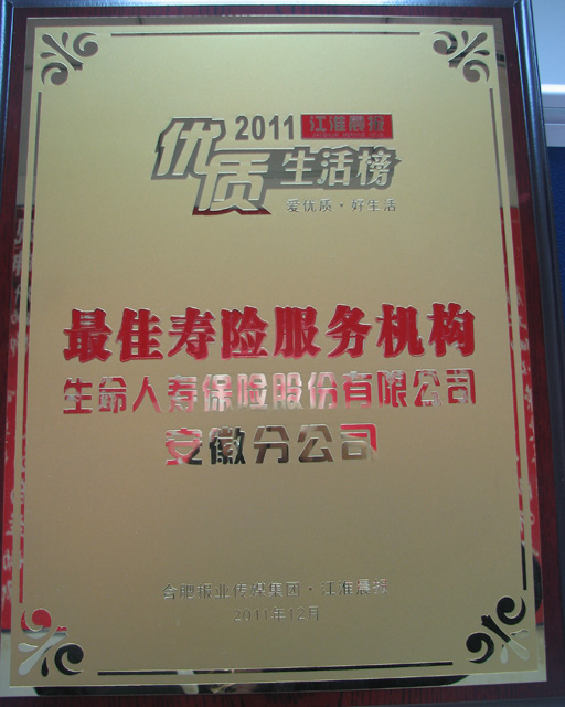 客戶為尊 爭創(chuàng)一流金融服務(wù)——生命人壽安徽分公司蟬聯(lián)2011年安徽“最佳壽險服務(wù)機構(gòu)”榮譽稱號