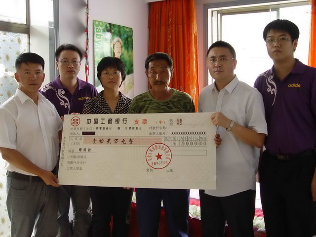 8月21日,生命人壽遼寧分公司營運(yùn)條線經(jīng)理鄧淑萍、辦公室陳研、撫順中支總經(jīng)理趙偉及相關(guān)理賠人員深入特大洪水重災(zāi)區(qū)撫順清原縣,第一時間將12萬元理賠款送到客戶高某手上,客戶感動的熱淚盈眶。