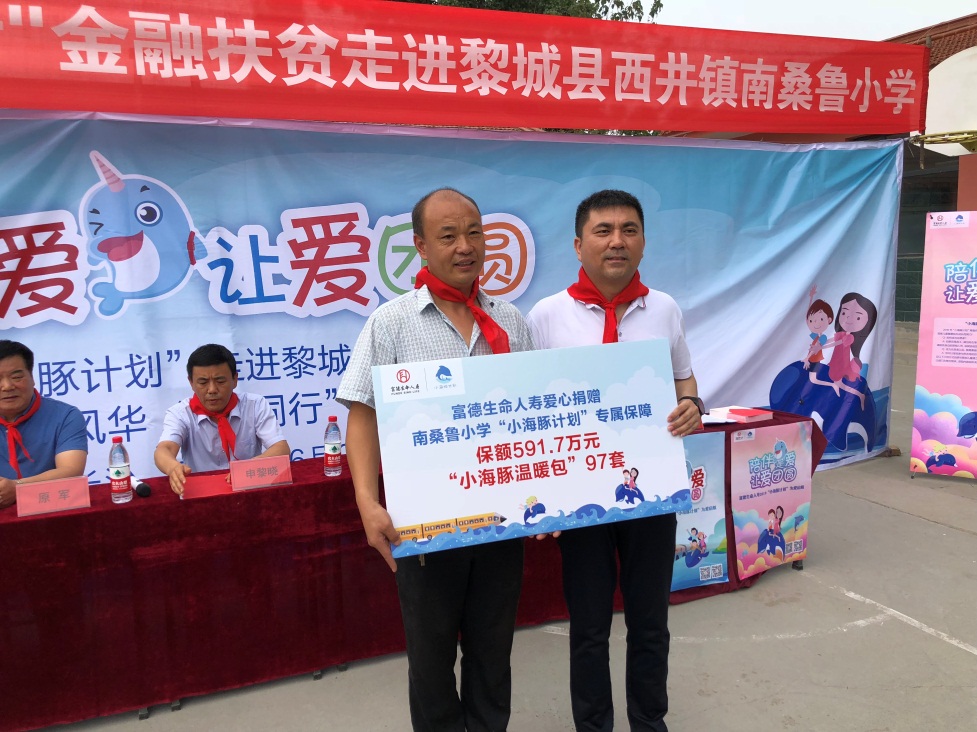 6月27日、7月2日、7月4日,“小海豚計劃”公益活動先后走進山西長治市黎城縣西井鎮(zhèn)南桑魯小學、晉中東陽鎮(zhèn)車輞村小學、太原古交武家莊小學,山西分公司總經理室成員身體力行積極行動在公益一線,其中,分公司總經理邊衛(wèi)在車輞村小學、副總經理李宏立在武家莊小學、總經理助理李可甲在南桑魯小學,分別參加了現(xiàn)場活動?;顒酉蛉鶎W校共計捐贈總保額超1800萬元的“小海豚計劃”專屬保障以及一批“小海豚溫暖包”等愛心物資。