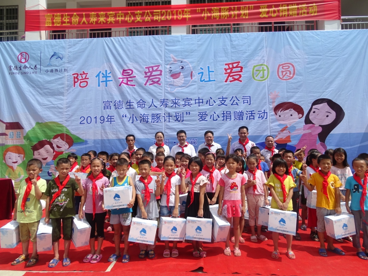 6月28日,小海豚志愿者來到廣西來賓忻城縣北更鄉(xiāng)的弄藍小學和古利小學,本次活動共捐贈總保額超450萬的“小海豚計劃”專屬保障,并為孩子們捐贈了“小海豚溫暖包”等物資。小海豚志愿者和孩子們開心互動,并為當月過生日的學生慶生。來賓市民政局副局長樊林康、來賓保險行業(yè)協(xié)會秘書長高勝平出席儀式。