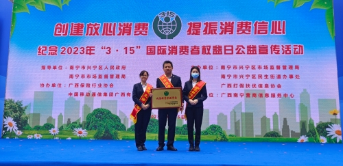 3月15日,廣西分公司積極參加南寧市興寧區(qū)3.15保險宣傳日活動,獲得“誠信經(jīng)營承諾”單位稱號。