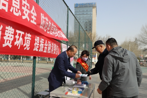 3月14日,陜西分公司總經(jīng)理張瑞、副總經(jīng)理梁亮帶隊,在鐘樓新街里開展戶外宣傳活動。